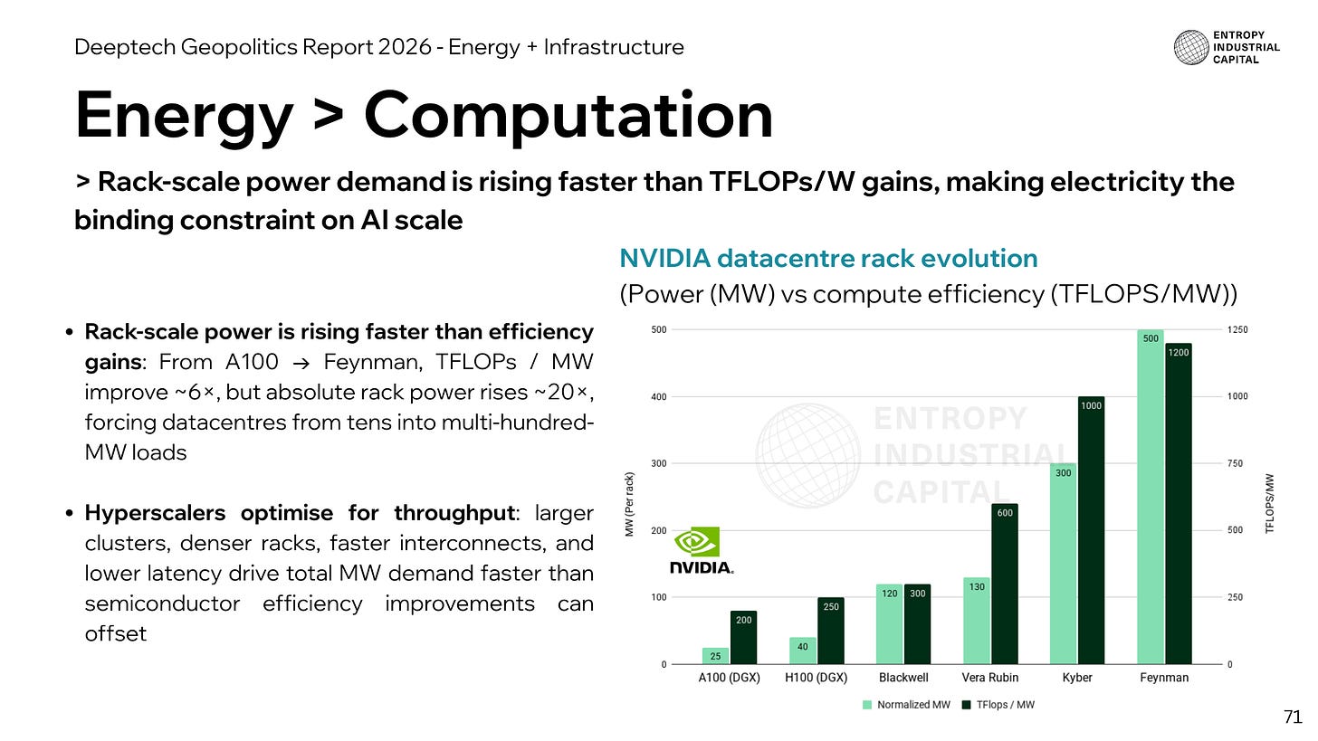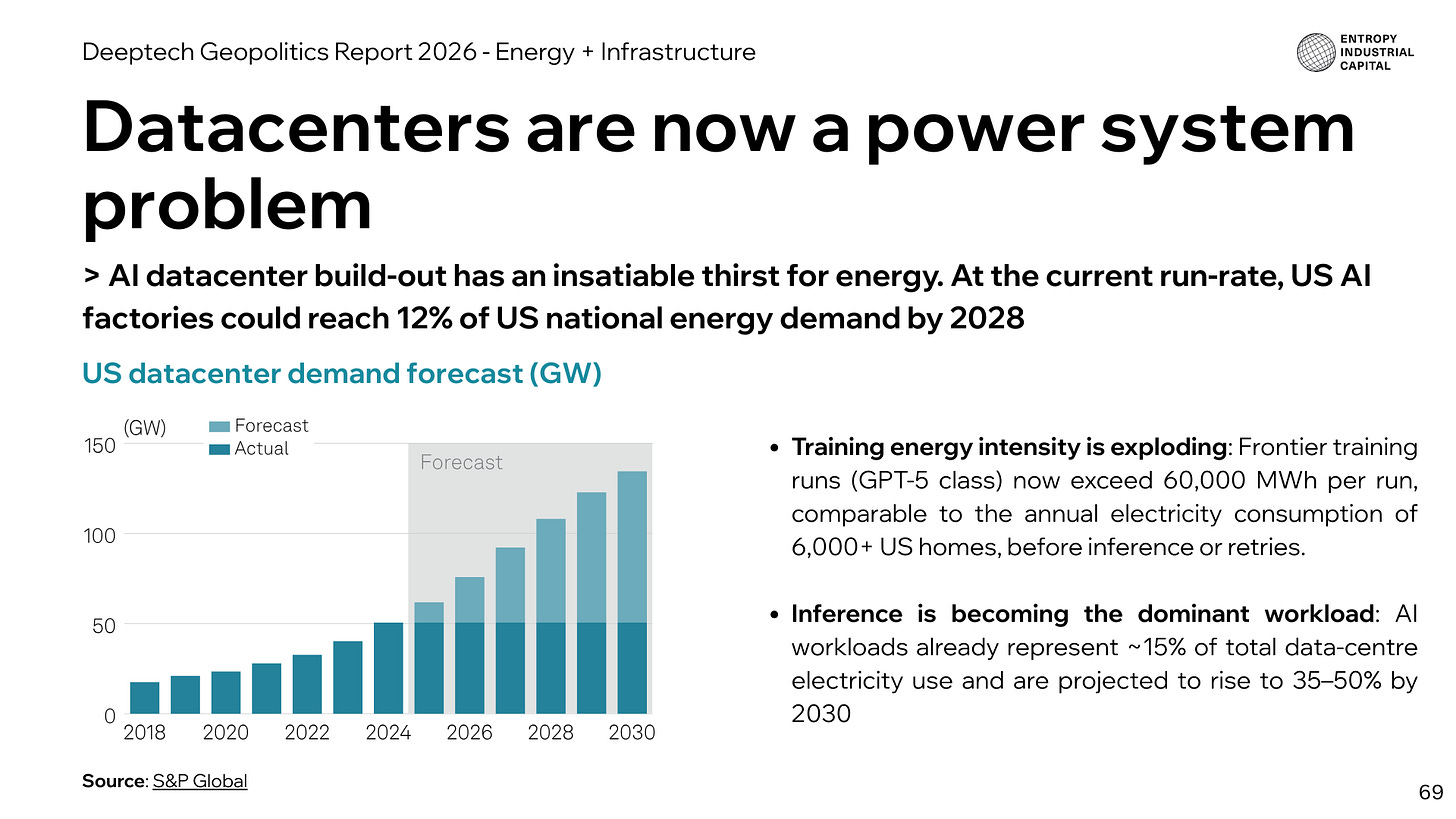 Energy + Infrastructure: US all in on AI factories build out, with energy a key constraint on AI progress, hyperscalers become de facto national infrastructure players, China nearly doubles Belt and Road initiative, with energy and electrification as strategic influence