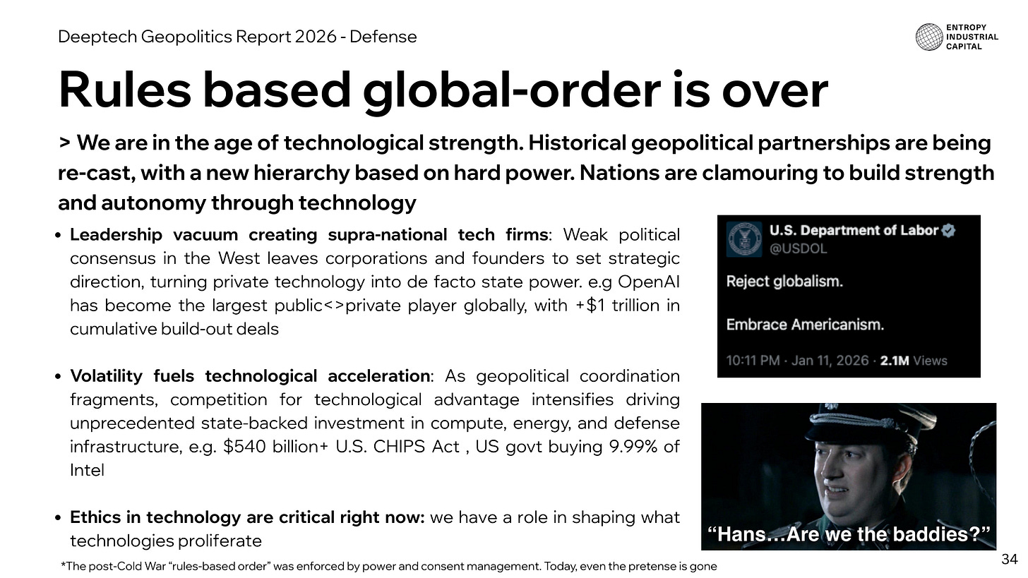This report maps the critical developments in deeptech and geopolitics for founders and investors navigating this shift - we cover AI, robotics, defence, energy, and manufacturing. Read it here.